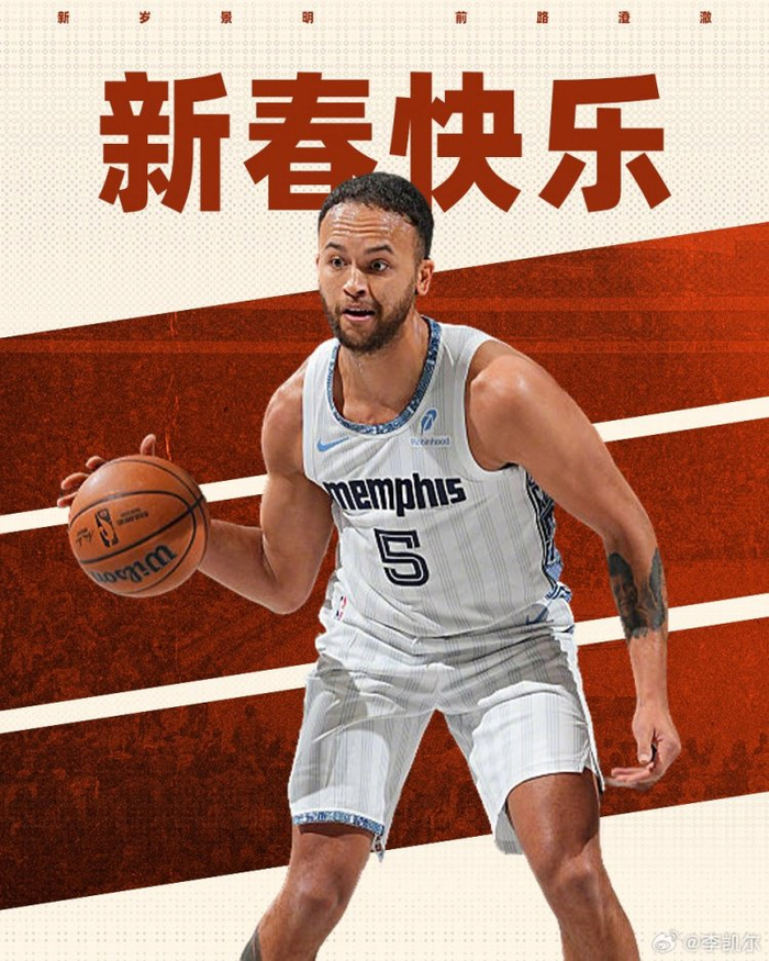 直播吧2月16日讯 灰熊球员李凯尔更新微博,祝福球迷朋友新春快乐。