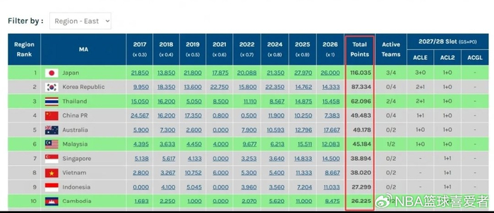 2025/26赛季亚冠单赛季技术积分正式敲定,中超联赛以7.383分滑落至东亚区第10位,被柬埔寨联赛(8.475分)正式超越,成为中国足坛又一扎心现实。